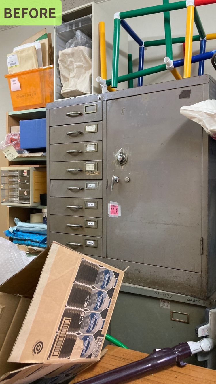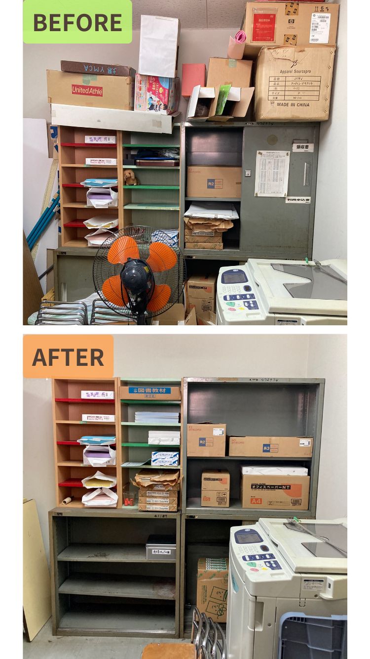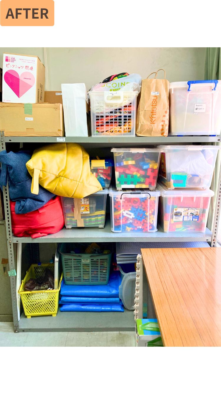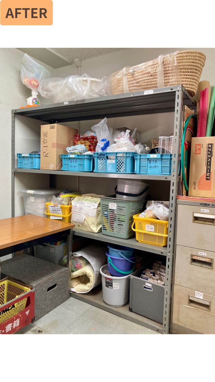 限られた時間の中で、できるだけ使いやすく、職員の方みんなが関わりやすい収納になるよう、一緒に整えていきました!