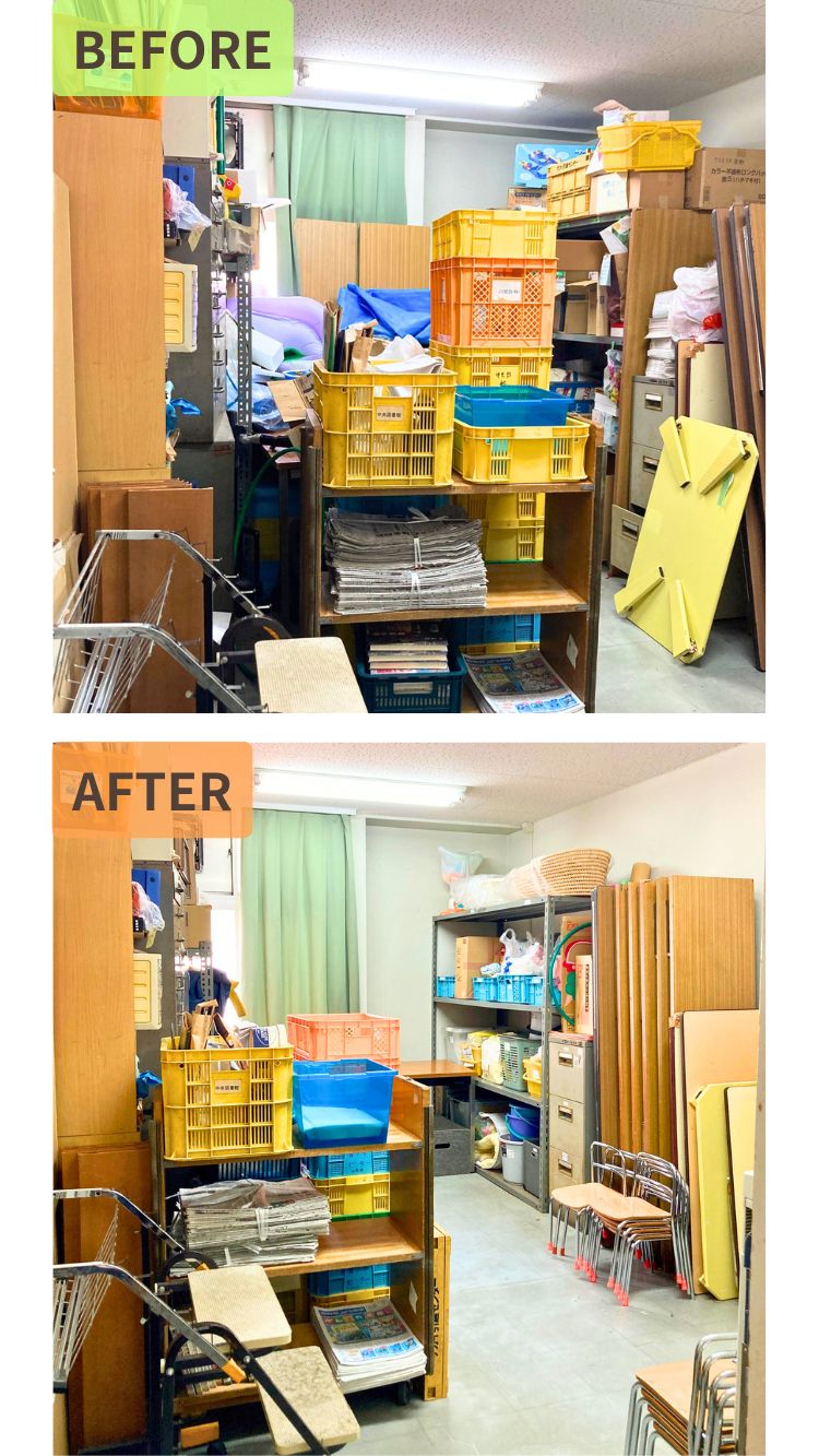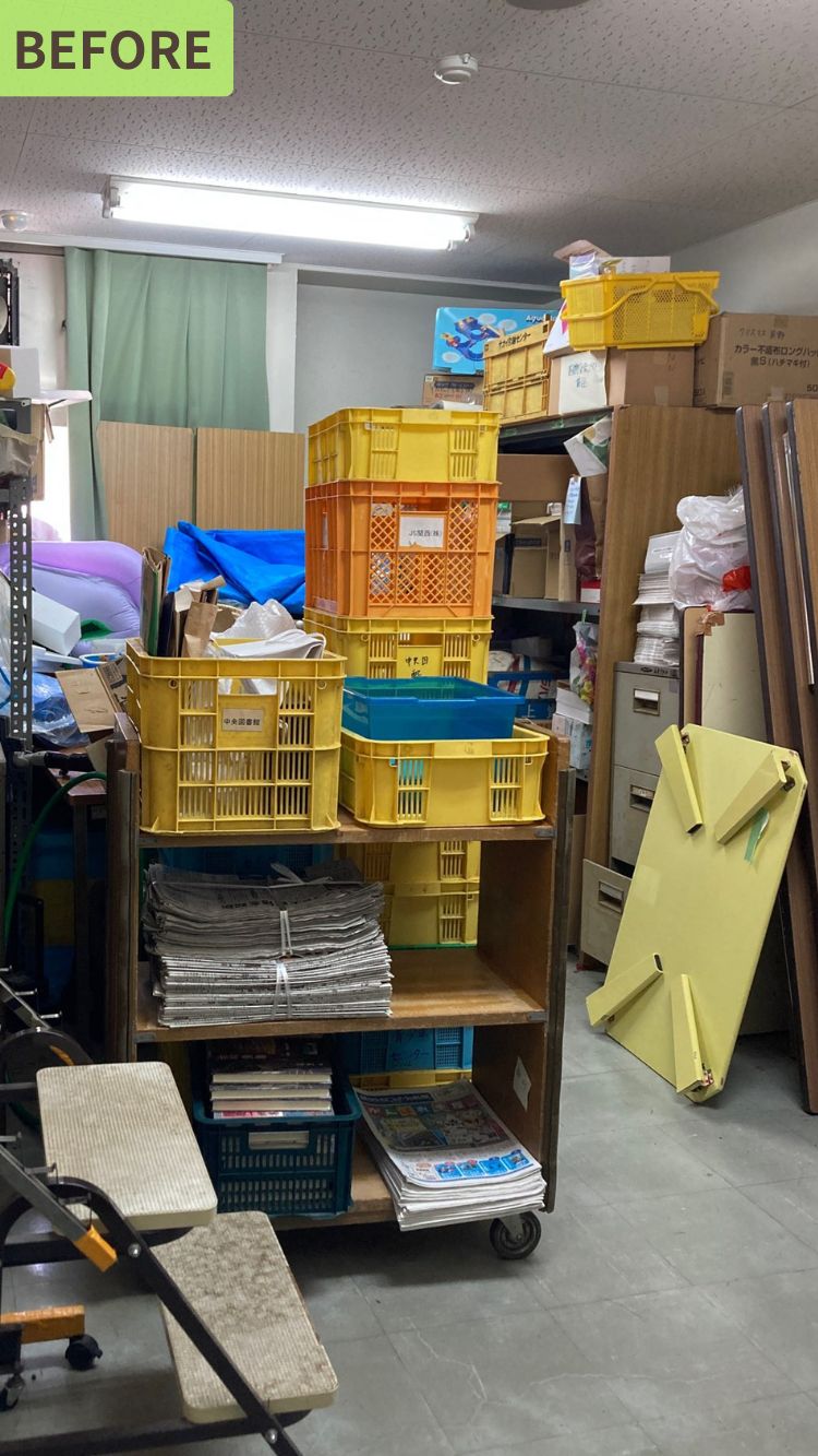施設の倉庫や共用スペースは、「誰かが使うかも…」と後回しになりがち。