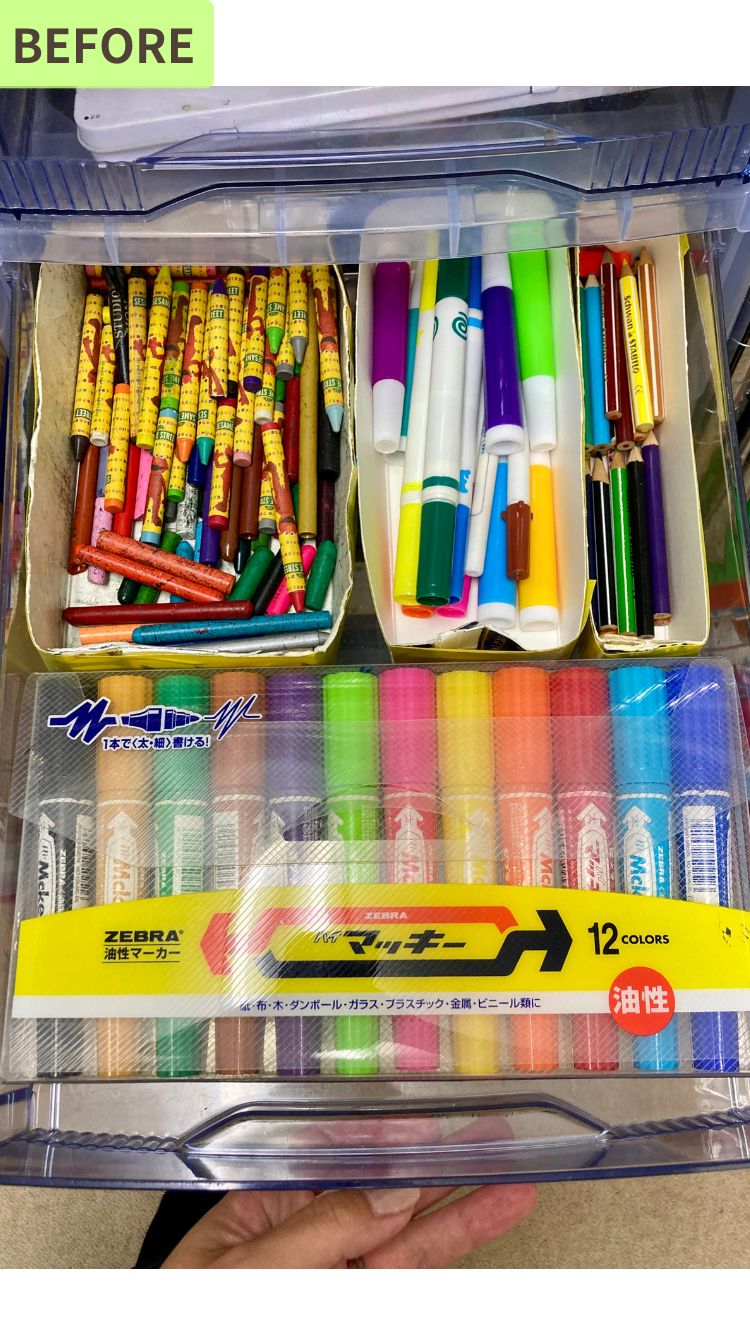 子ども自身が「あ、これが使いたい!」とすぐに選べる状態に。以前の「ワサ〜ッとあふれてストレス…」から解放され、スタッフもラクに。